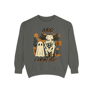 Introducing our cozy Unisex Garment-Dyed Sweatshirt, perfect for those chilly days and festive celebrations! This sweatshirt features an adorable design with a playful ghost and a cow, bringing a fun vibe to your autumn wardrobe. Made from a blend of soft cotton and durable polyester, it ensures comfort while keeping you stylish. You can wear it to Halloween parties, fall gatherings, or simply lounging at home. With a relaxed fit, it's ideal for adults who enjoy casual and fun fashion. This piece is perfect for those looking to express their unique personality while staying warm and comfy. Embrace the spirit of the season with this charming addition to your collection! Product features - 1x1 ribbed collar, cuffs, and bottom hem for a snug fit - Necktape for added comfort and durability - Soft 80% cotton, 20% polyester blend for a luxurious feel - Medium-heavy fabric, perfect for cool weather - Embroidery options for a personalized touch Care instructions - Machine wash: cold (max 30C or 90F) - Non-chlorine: bleach as needed - Tumble dry: low heat - Do not iron - Do not dryclean